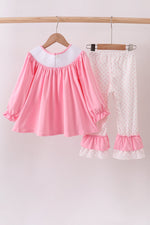 Pink christmas tree smocked ruffle pants set