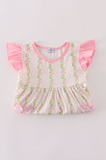 Pink lemon print bow ruffle shorts set