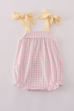 This charming pink gingham bubble romper features adorable puppy embroidery, adding a playful touch to your little one’s wardrobe. Crafted for comfort and style, it’s perfect for sunny days and fun adventures. Easy to wear and irresistibly cute, this piece brings joy to every outfit.