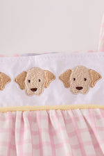 Pink puppy embroidery gingham bubble