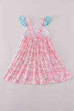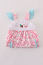 This playful pink dress features charming strawberry and milk cow embroidery, adding a sweet touch to its ruffled design. Perfect for sunny days or fun outings, its light fabric and whimsical details make it a delightful choice for little ones who love to stand out with cute, cheerful style.