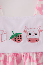 Pink strawberry milk cow embroidery ruffle shorts set