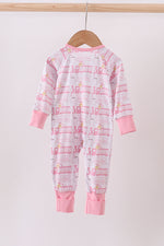 Pink train bamboo pajamas zipper romper