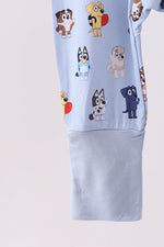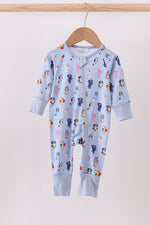 Dress your little one in cozy charm with this premium blue bamboo romper featuring a playful character print. Soft, breathable bamboo fabric keeps your child comfy all day, while the fun design adds a splash of whimsy to their wardrobe. Perfect for playtime or naptime, this romper combines comfort and cuteness effortlessly.