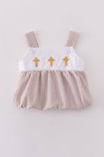 This premium brown cross embroidery bubble is the perfect addition to your wardrobe. With its unique design and high-quality construction, you'll stand out in any crowd. Embrace your playful side and rock this bubble with confidence. (This description is on point!)