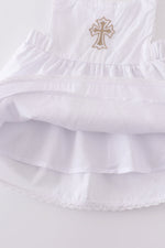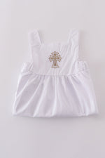 Unleash your inner fashionista with our Premium Cross Embroidery Romper! This playful piece features intricate cross embroidery and a flattering fit. Perfect for any occasion, you'll be turning heads and making a statement wherever you go. (Warning: may cause extreme confidence and compliments.)