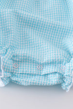 Hop into style with our Premium Mint Bunny Egg Embroidery Gingham Bubble! Featuring a charming bunny and egg embroidery on a mint gingham print, this bubble is as cute as it is comfortable. Perfect for playdates and Easter celebrations, your little one will love this quirky and fun addition to their wardrobe.