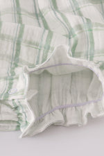 Add a dash of charm to any outfit with this Premium Sage Ruffle Plaid Bubble. Crafted in a soft sage plaid fabric, it features playful ruffles that bring delightful movement and texture. Perfect for little adventurers who love style and comfort, this bubble combines cozy fit with a flirty twist to keep your child looking effortlessly cute all day long.