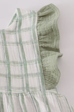 Step into charm with the Premium Sage Ruffle Plaid Dress. This playful piece combines soft sage tones with a classic plaid pattern, enhanced by fun ruffle details for a flirty finish. Perfect for adding a touch of whimsy to your wardrobe, it pairs easily with sneakers or heels to keep your style delightfully fresh and spirited.