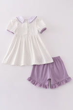 Get ready to pirouette in style with our purple ballet embroidery girl set! This adorable outfit features delicate embroidery and is perfect for any little dancer. Put on a show and twirl away in this must-have outfit.