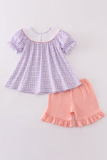 This adorable set features a playful purple bunny embroidery on a smocked top and matching shorts. Perfect for your little one's photo shoots or playdates! (Hop on this charming set before it's gone!)