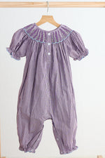Purple castle hand smocked gingham girl romper