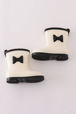 White & black bow rain boots